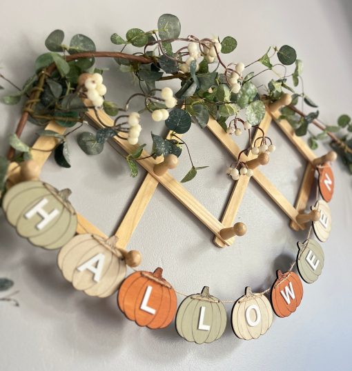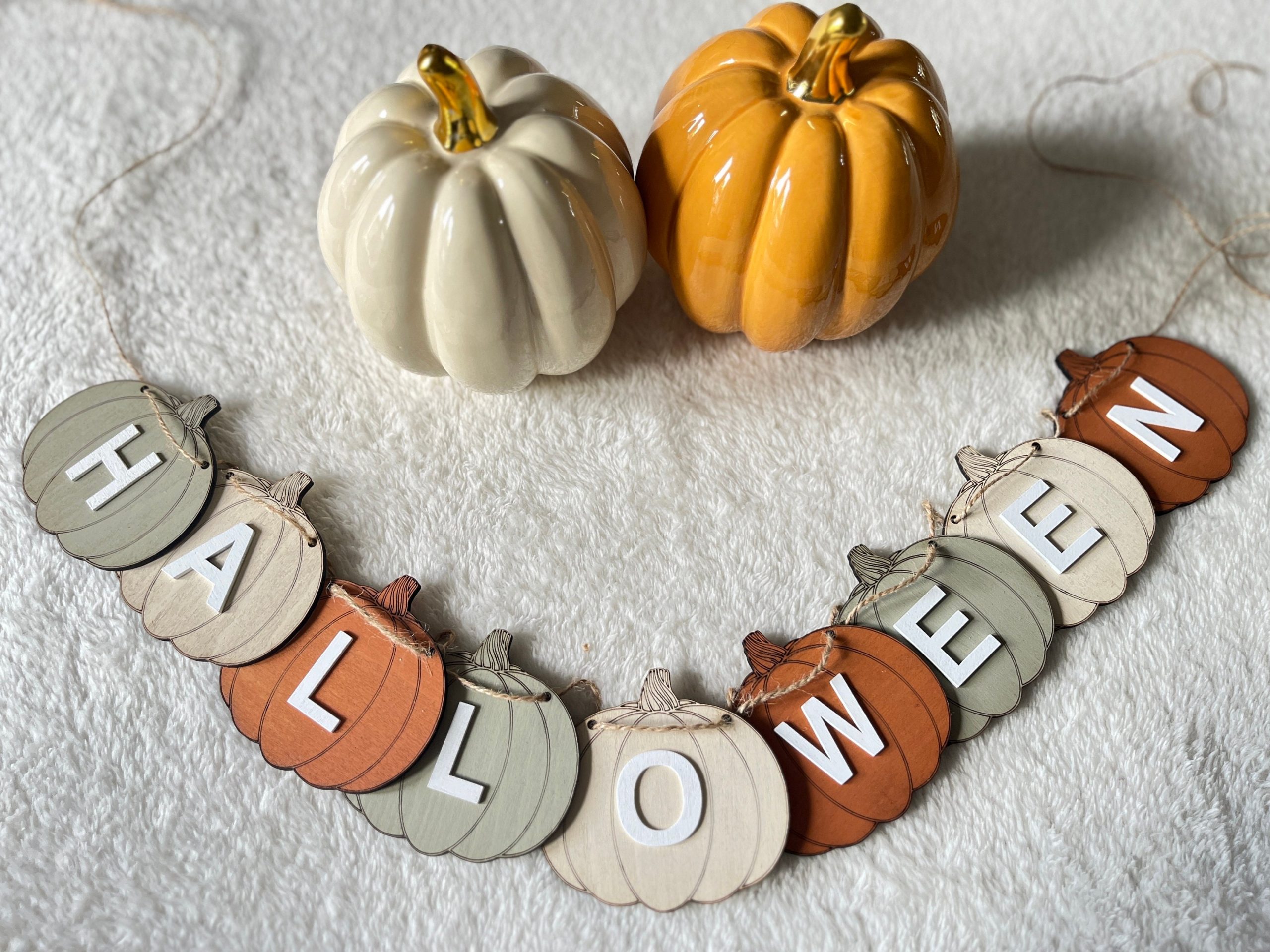 馃巸Reusable Halloween bunting banner. Halloween decoration for home boo garland. Halloween decoration for wall art wooden Halloween banner.